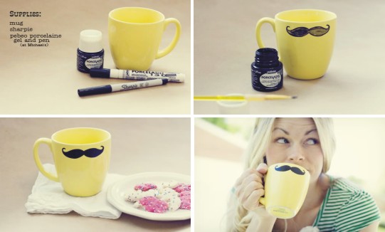 Mas eu sei que nem todo mundo é assim. E sei que a vida anda corrida também. Por isso, se você ainda não teve tempo de comprar o presente do seu par ou comprou algo que está impessoal demais, pedindo um complemento, meu conselho é: passe na papelaria e na loja de utensílios domésticos mais próxima, compre uma caneta de tinta permanente e uma xícara de porcelana lisa e… Solte a imaginação!